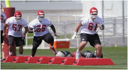 Once June starts, they are scheduled for on-field work 11 of the first 15 days in the month and one stretch where they work eight out of nine days. Even with all the on-field work, the off-season strength and conditioning program does not shut down. No way; players just get in their sessions before practice or afterwards. This year, it seems the majority of Chiefs players are hitting conditioning sessions first thing in the morning (7:30 a.m.)