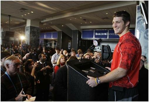 “Some guy named Tebow will be at podium C,” announced the NFL type that was manning the microphone in the NFL Combine press room.